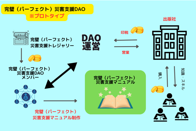 毎年、最新の情報や取り組みをボトムアップで集積し、「災害マニュアル」として大手出版社から出版する予定です。Web3の取り組みに出版も掛け合わせることで、「完璧(パーフェクト)災害支援DAO」の認知を広げ、より多くの方にこの取り組みを知っていただくとともに、災害支援活動の知識、スキルの浸透を図っていきます。
