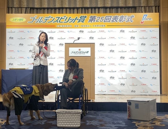 菅野投手は2015年より菅野基金を通して(社福)日本介助犬協会(以下、協会https://s-dog.jp/)を支援しており、支援が10年目となる今回、報知新聞社制定のゴールデンスピリット賞を受賞した。ゴールデンスピリット賞はプロ野球人の社会貢献活動を表彰するもので、12月26日(木)にはジ・オークラ東京(東京都)で表彰式が執り行われた。