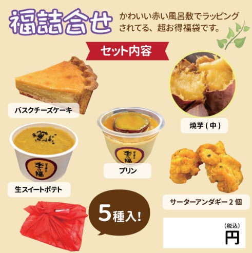 福袋詰合せ(焼芋中/プリン/生スイートポテト/バスクチーズケーキ/サーターアンダギー2個)