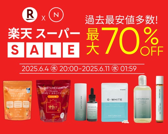 英国発CBD専門店Naturecanは、6/4(水)20:00~6/11(水)1:59まで開催される楽天スーパーSALEにおいて、品質にこだわったCBDオイルや人気No.1クリアホエイプロテインをはじめとする数多くの商品を、最大70%OFFにて販売致します。