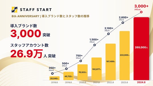 また、2024年8月末時点での導入ブランドは3075ブランド、累計スタッフアカウント数は26.9万となりました。