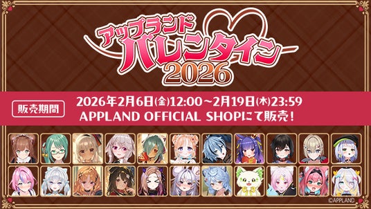 株式会社アップランド(本社:東京都世田谷区)が運営する「.LIVE」・「ぶいぱい」メンバー5名の『アップランドバレンタイン2026』グッズおよび総勢22名が参加する同テーマのボイスをAPPLAND OFFICIAL SHOPにて販売することをお知らせします。