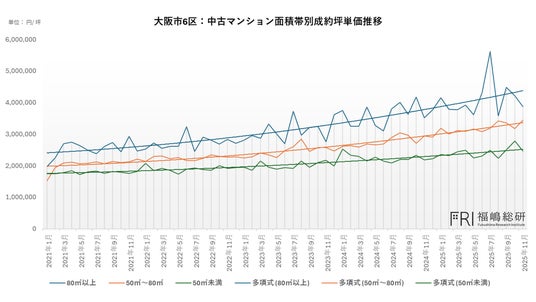 そのため市場に資金が流入すると、まず希少性の高い広面積帯から価格が押し上げられる構造が生まれます。東京都心部では顕著に確認されてきましたが、大阪市6 区の都心部でも同様の兆候が見え始めています。