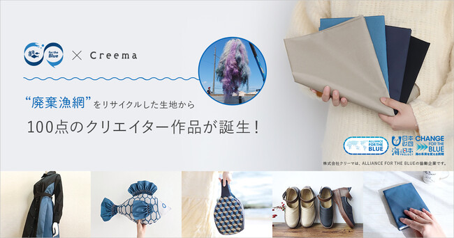 日本最大級のハンドメイドマーケットプレイス「Creema(クリーマ)」を運営する株式会社クリーマ(本社:東京都渋谷区、代表取締役社長:丸林耕太郎、以下クリーマ)は、公益財団法人日本財団が支援する、一般社団法人ALLIANCE FOR THE BLUE(以下AfB)とコラボレーションし、廃棄漁網をリサイクルした生地を用いたオリジナル作品を募集する企画を実施しました。この度、クリエイターによるオリジナル作品100点が誕生し、本日3月9日(木)よりCreema特設サイトにて展示・販売をスタートしました。
