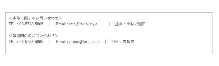 製品の掲載ご希望の方はこちら:https://www.takibi-reservation.style/media/contact/