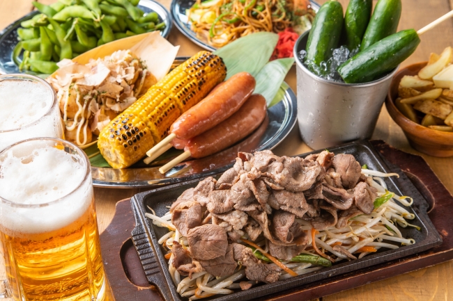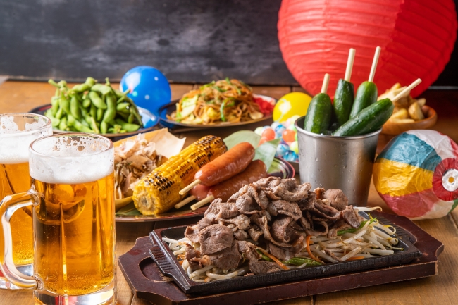 夏祭りのような空間で屋台フードも肉も食べ放題!!