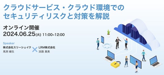 株式会社スリーシェイク(本社:東京都新宿区、代表取締役社長:吉田 拓真、以下スリーシェイク)は、株式会社LRMと共同で、クラウドサービス・クラウド環境でのセキュリティリスクと対策を解説する無料オンラインセミナーを、2024年6月25日(火)に開催いたします。
