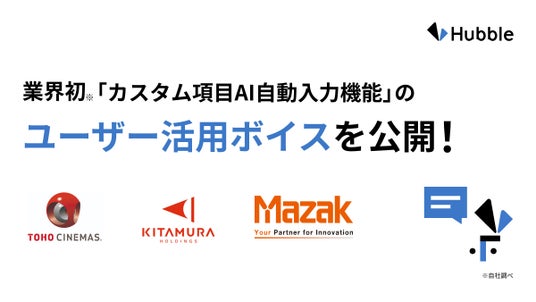 株式会社Hubble(東京都渋谷区、CEO:早川晋平)が提供する「Hubble(ハブル)」および「Hubble mini(ハブル ミニ)」に搭載した業界初*の新機能「カスタム項目AI自動入力機能」(以下、本機能)の導入企業が、業界業種問わず拡大していることをお知らせします。導入企業から、全国約70ヶ所以上で映画館「TOHOシネマズ」を運営するTOHOシネマズ株式会社、カメラのキタムラなどを運営する株式会社キタムラ・ホールディングス、全世界に拠点を持つ工作機械の大手老舗メーカー ヤマザキマザック株式会社、大手ゲーム開発会社の機能活用事例を公開いたします。