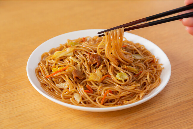 シのあるもちもち食感を味わうことができ、焼そば本来の風味に仕上げています。