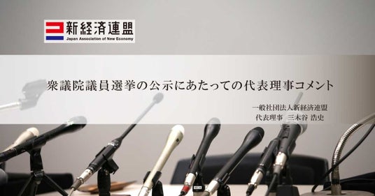 一般社団法人 新経済連盟(所在地:東京都港区、代表理事:三木谷浩史、以下「新経連」)は、衆議院議員選挙の公示にあたって、下記の通り代表理事コメントを発表します。