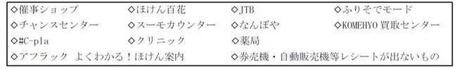 ・「ペリエでのお買い物・ご飲食」の対象は、以下を除く「ペリエ千葉各ショップ」となります。
