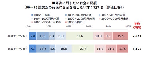 - 死後にお金を残したい人の、残したい平均金額は総額約2,451万円。