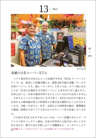 本書は、現地在住のフォトグラファーである著者が、ハワイ生活における何気ない習慣、季節のできごと、大切にしている価値観まで、ささやかな日常を365日分、色彩豊かな写真とエピソードでつづったエッセイ集です。旅行では見られないハワイ島のさまざまな表情を垣間見ることで、自宅にいながら旅行気分を味わうことができます。心やすらぐ南の島の日々の暮らしには、遠く離れた日本で暮らす私たちへのヒントもたくさん詰まっています。