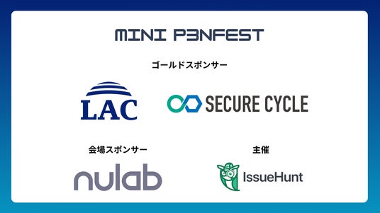 バグバウンティ・プラットフォーム「IssueHunt ( https://issuehunt.jp/ )」や、アプリケーションセキュリティポスチャー管理(ASPM)ツール「Baseline( https://baselinehq.io/ )」を提供するIssueHunt株式会社(本社:東京都中央区日本橋茅場町一丁目8番1号、代表取締役:横溝 一将)は、2025年6月7日に福岡で開催する、学生のためのサイバーセキュリティカンファレンス「Mini P3NFEST」について、スポンサー企業が決定したことをお知らせいたします。