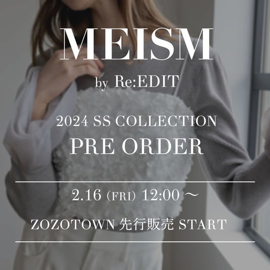株式会社ネオグラフィック(本社:大阪市西区/代表取締役社長:工藤 正樹)の30代~40代向けブランド「MEISM by Re:EDIT(ミズムバイリエディ)」の2024SSプレオーダーを2/16(金)12:00~ZOZOTOWN先行で開催します。
