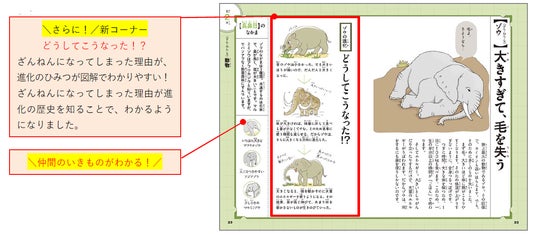第10弾では今まで以上にわかりやすく、さらにおもしろさが進化しました。人気のいきもの64種の特徴的「ざんねん」や最新の研究を反映した分類で、生き物のひみつを紹介。仲間のいきものも学べます。