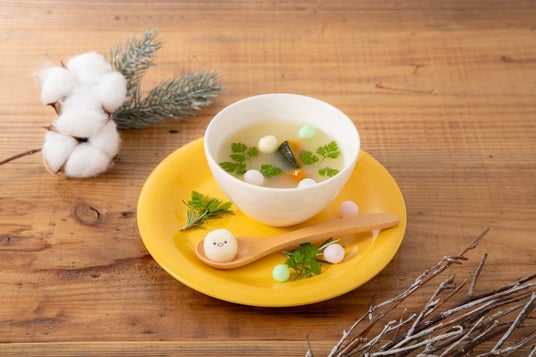 温泉をイメージしたスープにシマエナガちゃんたちを入れてお召し上がりください♪