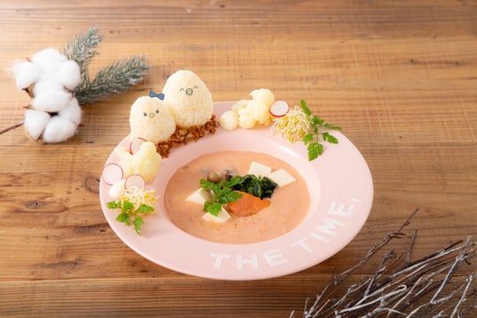 ほっとあたたまる明太豆乳スープとシマエナガちゃん&チビエナガちゃんをイメージしたおにぎりセット!