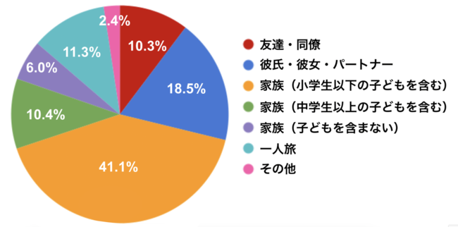 に行きたいという理由が多数を占めました。今年の春で東京ディズニーリゾートが40周年を迎えるにあたり、特別なお祝いの期間に訪れたいという声が多く聞かれました。他にも、鴨川シーワールドやいちご狩り、キャンプ・グランピングなども人気を集めています。■ 上記の都道府県に、誰と旅行に行きたいですか?