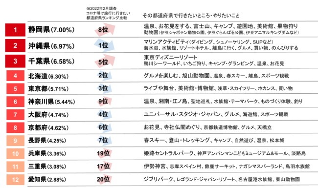 ▼2023年 この春旅行に行きたい都道府県ランキング
