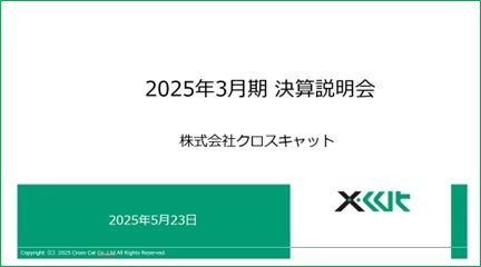 株式会社クロスキャットは、「2025年3月期 決算説明会」の動画を公開したことお知らせします。機関投資家・アナリストの皆様をはじめ、個人投資家の皆様、当社にご関心をお寄せいただいている多くの方々にご覧いただきたく、今回の説明会動画を用意いたしました。