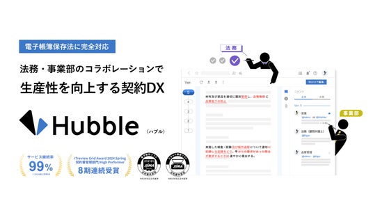 「手触りのある課題をテクノロジーによって解決し、働く人の個性や創造力が発揮される未来を創出する。」をパーパスに掲げ、法務と事業部門の協業性を高め生産性を向上するための契約業務基盤を実現・定着するクラウドサービス「Hubble(ハブル)」、締結した契約書を入れるだけでAIが網羅的な契約データベースを構築する「Hubble mini(ハブル ミニ)」、NDAの統一規格化を目指すコンソーシアム型のNDA締結プラットフォーム「OneNDA(ワンエヌディーエー)」、法務の生産性を高めるメディア「Legal Ops Lab(リーガルオプスラボ)」を提供・運営しております。