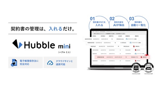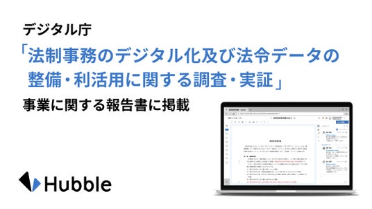 法務と事業部門の協業性を高める契約業務・管理クラウドサービス「Hubble(ハブル)」、契約書を入れるだけでAIが網羅的な契約データベースを構築する契約書管理クラウドサービス「Hubble mini(ハブル ミニ)」を提供する株式会社Hubble(東京都渋谷区、CEO:早川晋平)が、デジタル庁が法制事務デジタル化・法令等データ利活用促進のために取り組んだ、令和5年度「法制事務のデジタル化及び法令データの整備・利活用に関する調査・実証」事業に関する報告書(委託先:第一法規株式会社等/2024年5月24日公開)に掲載されたことをお知らせいたします。