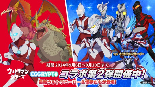 株式会社GameWith(本社:東京都港区、代表取締役社長:今泉卓也、以下「GameWith」)は、出資先であり事業パートナーである株式会社Kyuzan(本社:東京都渋谷区、代表取締役:高橋 卓巳、以下「Kyuzan」)と共同開発した、アプリで簡単に遊べるNFTゲーム「EGGRYPTO(エグリプト)」において、「ウルトラマンシリーズ」とのコラボイベント第2弾を本日9月6日(金)より開催いたします。