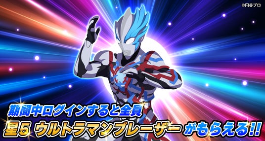 期間中にログインしたユーザー全員に、限定キャラクター ★5「ウルトラマンブレーザー」をプレゼントいたします。詳しくはゲーム内のお知らせをご確認ください。