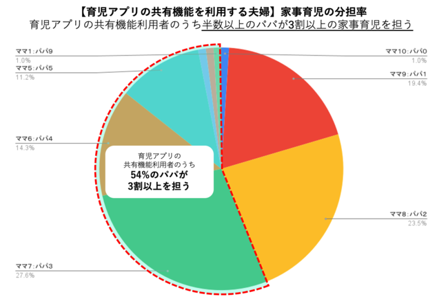 アプリの共有機能を利用する夫婦は、育児に積極的なパパが多い傾向に。