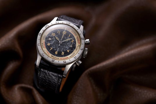 Galletの数ある名作時計の中でも、特に際立つ2つのモデルは、旅行、スポーツ、産業において欠かせない存在となりました。まず、1939年に登場した「フライング・オフィサー」は、複数のタイムゾーンを追跡できる画期的な防水クロノグラフでした。この革新的なツールは、大陸間飛行が始まったばかりの時代において、パイロットや乗客にとって不可欠な相棒となりました。当時の長距離飛行は、数日にわたる旅程の中で何度も夜間の燃料補給を必要としていたのです。