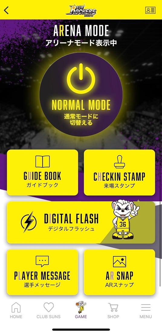また、試合会場で利用可能な「アリーナモード」は、試合会場内限定のコンテンツが用意されています。この仕組みは、ファンとチームの共感を生み出し伝播させる施策として好評を得ています。