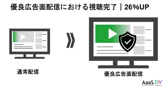 更に、優良広告面配信に伴う、広告全体のパフォーマンスの向上として、動画広告の視聴完了率が通常配信と比較して1.26倍になることが確認されました。