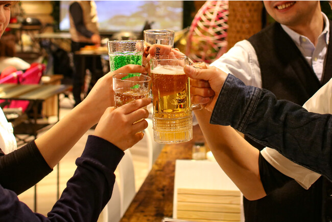 セルフ飲み放題は、下からビールが湧き出てくる「トルネードサーバー」やホワイト生ビールも飲み放題!