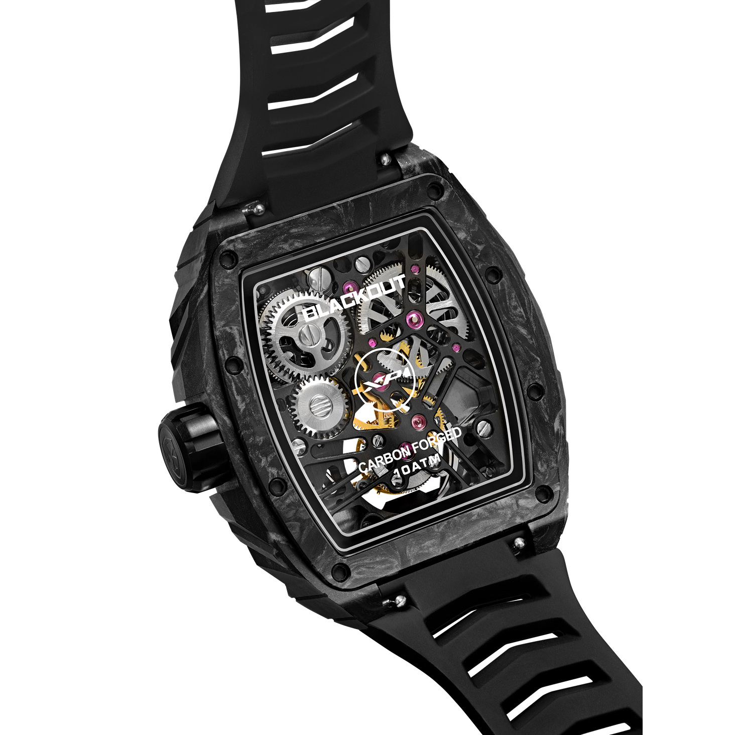 高品質のアジア製トゥールビヨンに、スイス・ジュネーブの自社工房で熟練の職人達の手により再構築するという新たな手法で、鮮烈なデビューを果たした「BLACKOUT WATCHES」。