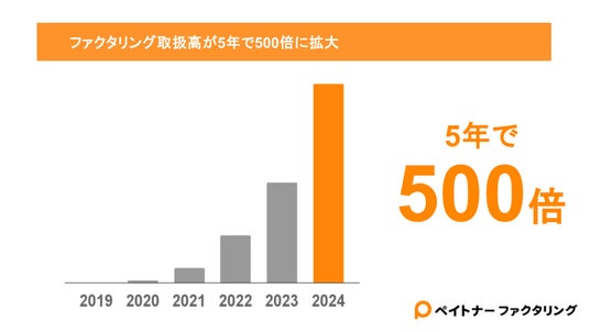 サービス開始以来、年間のファクタリング取扱高が5年で500倍になるなど飛躍的にサービスが拡大しています。今回調達した資金は更なるサービス拡大へ投資してまいります。