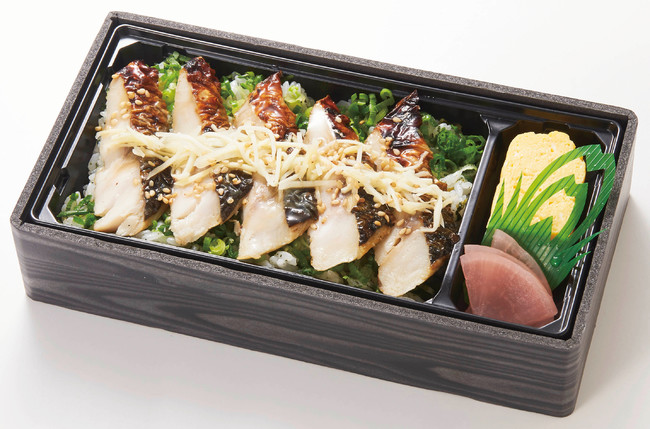 炭火で焼き上げた脂乗りの良い焼さばと、わさび菜などを混ぜ込んだわさび御飯の風味と辛みが食欲そそる商品です。