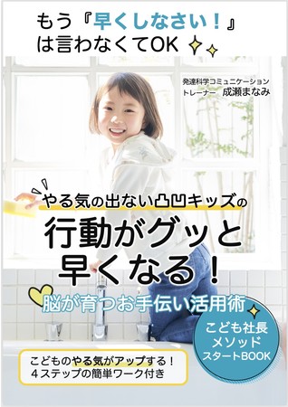 株式会社パステルコミュニケーション(本社:東京都豊嶋区、代表取締役吉野加容子)代表の吉野加容子が開発した、親子のコミュニケーションをスムーズにして子どもの発達を加速させる「発達科学コミュニケーション」講師・成瀬まなみによる、『もう『早くしなさい!』は言わなくてOK「やる気の出ない凸凹キッズの行動がグッと早くなる!脳が育つお手伝い活用術~こども社長メソッドスタートBOOK~」』小冊子の無料配布を開始しました。