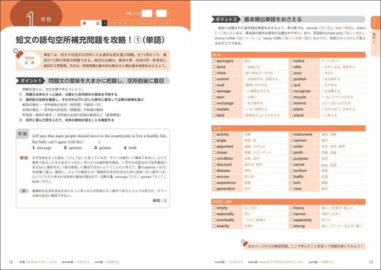 1日に取り組む範囲がきっちり決まっているので、試験日までの学習計画が立てやすく、忙しくても学習時間を確保しやすい構成になっています。