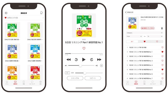 再生速度の変換や、聞き流し学習が可能な公式アプリ「英語の友」に対応しており、手軽にスマートフォンで音声を聞くことができます。なお、音声はmp3ダウンロードにより再生することもできます。
