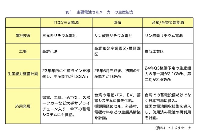 1.台湾蓄電・EV市場向けセルは需要増で明るい見通し