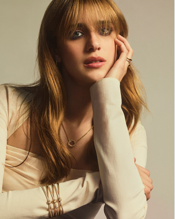 円形のペンダントトップには前面にダイヤモンドのパヴェが施され、ダイヤモンドがセッティングされたゴールドリンクと組み合わさり煌めく団結の象徴となっています。2 つの円の間を滑るように動く可動式チェーンが、愛の自由と楽しさを思い起こさせます。