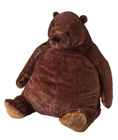 抱きしめると心地よく、大きく膨らんだかわいいおなかはクッション代わりにも。この大きなブラウンベアは、いつでも両手を広げてみんなを迎えてくれます。