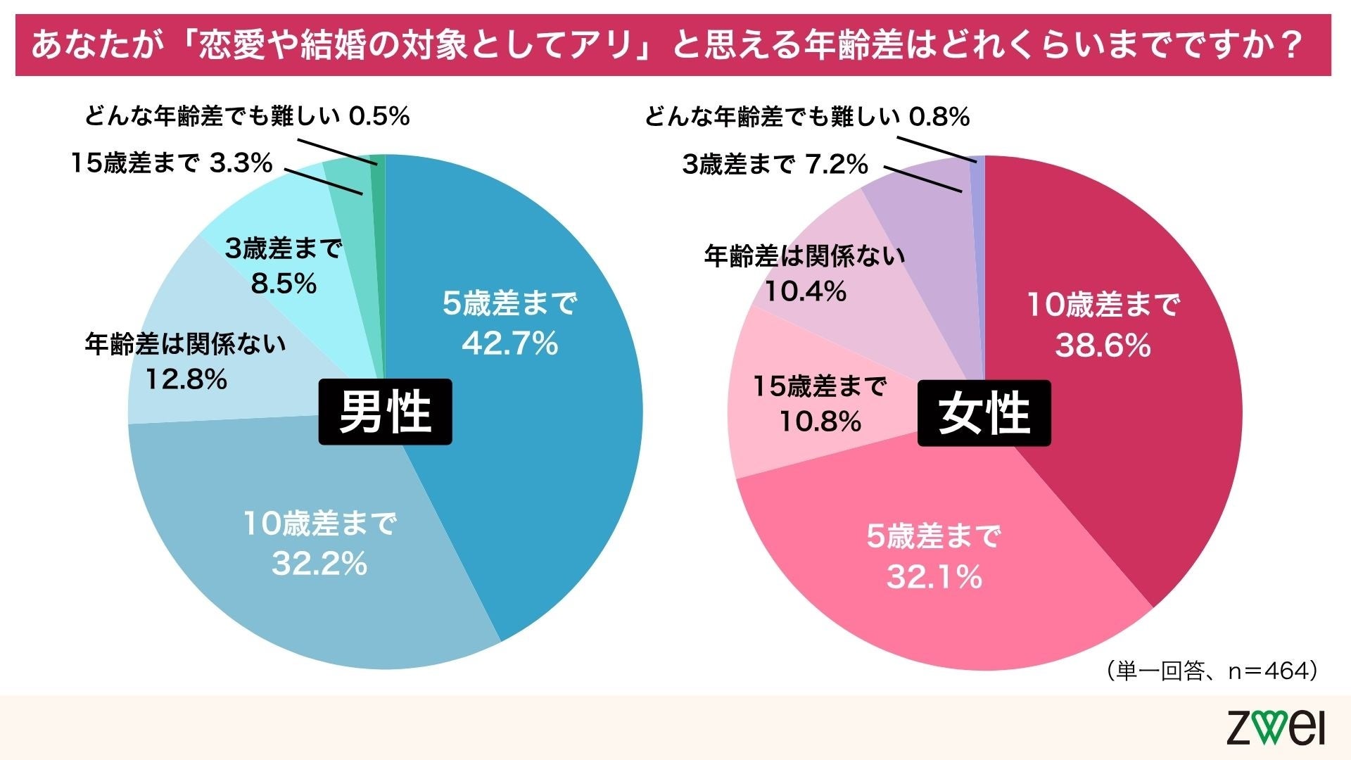 「アリ」な年齢差は「5~10歳差まで」が7割超。男性の方が慎重?