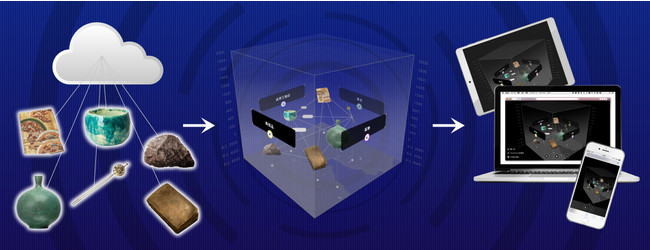 美術館・博物館等が入稿フォーマットに合わせて作成した資料情報の解説とサムネイル画像を準備することで、インターネット上にオリジナルの「みどころキューブ」を公開できます。生活者はPCやタブレット端末、スマートフォン等のさまざまな情報機器で閲覧できます。