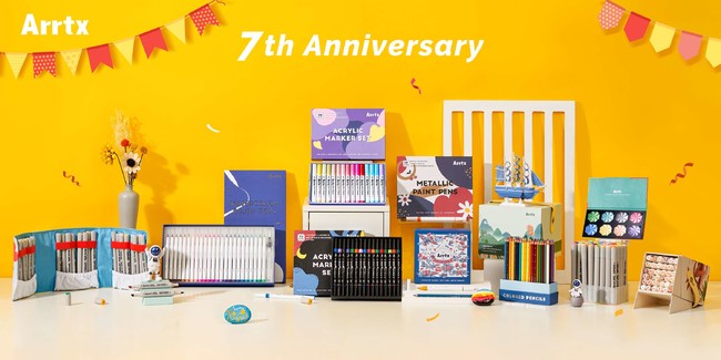 Arrtx創立7周年おめでとう御座います!2015年開業以来、Alpシリーズアルコールマーカーペン、Orosマーカーペン、アクリルマーカーペン、イーゼル、色鉛筆などの人気商品を発売しており、高い品質とコスパ、オシャレなデザインなどの特徴が持つ、欧米市場から高い評価を得ております。