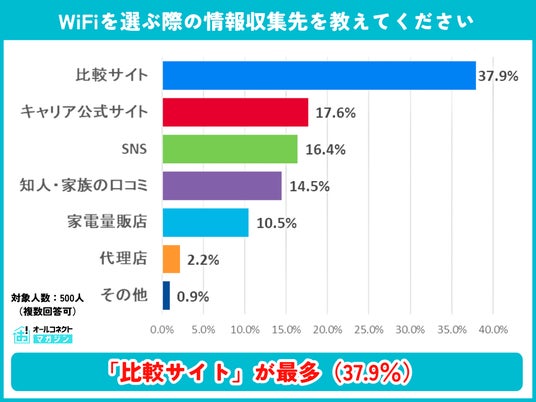 WiFi選びの情報源は「比較サイト」が37.9%で最多