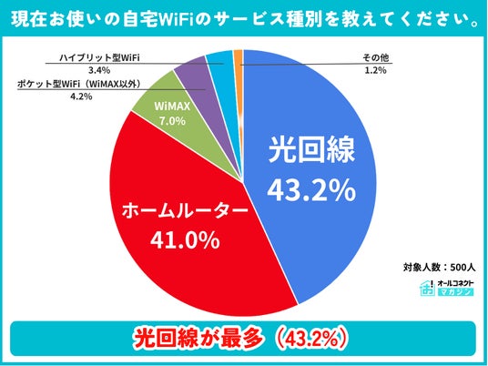 ・1位:光回線43.2%、2位:ホームルーター41.0%