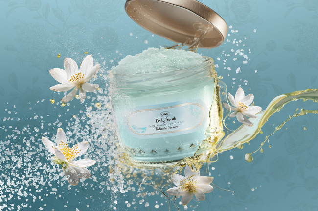 一番人気の「ボディスクラブ デリケート・ジャスミン」の清潔感あふれる凛としたクリーン・フローラルの香りを思わせるような、爽やかで優しく包み込むような赤楚さんの表情にご注目ください。