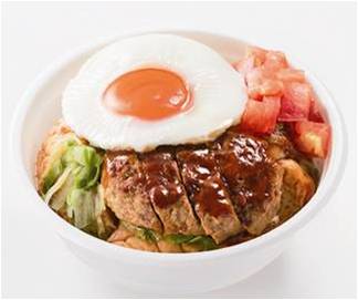 米粉パンの上にロコモコの具材を載せて丼に仕上げました。